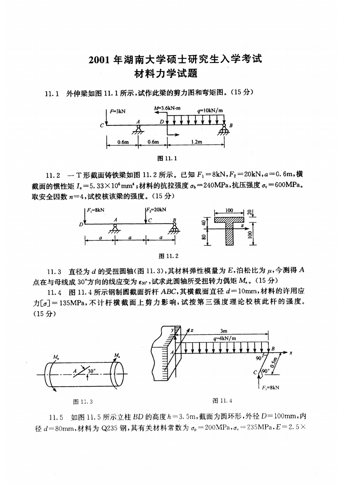 湖南大学2001年812《材料力学》考研真题
