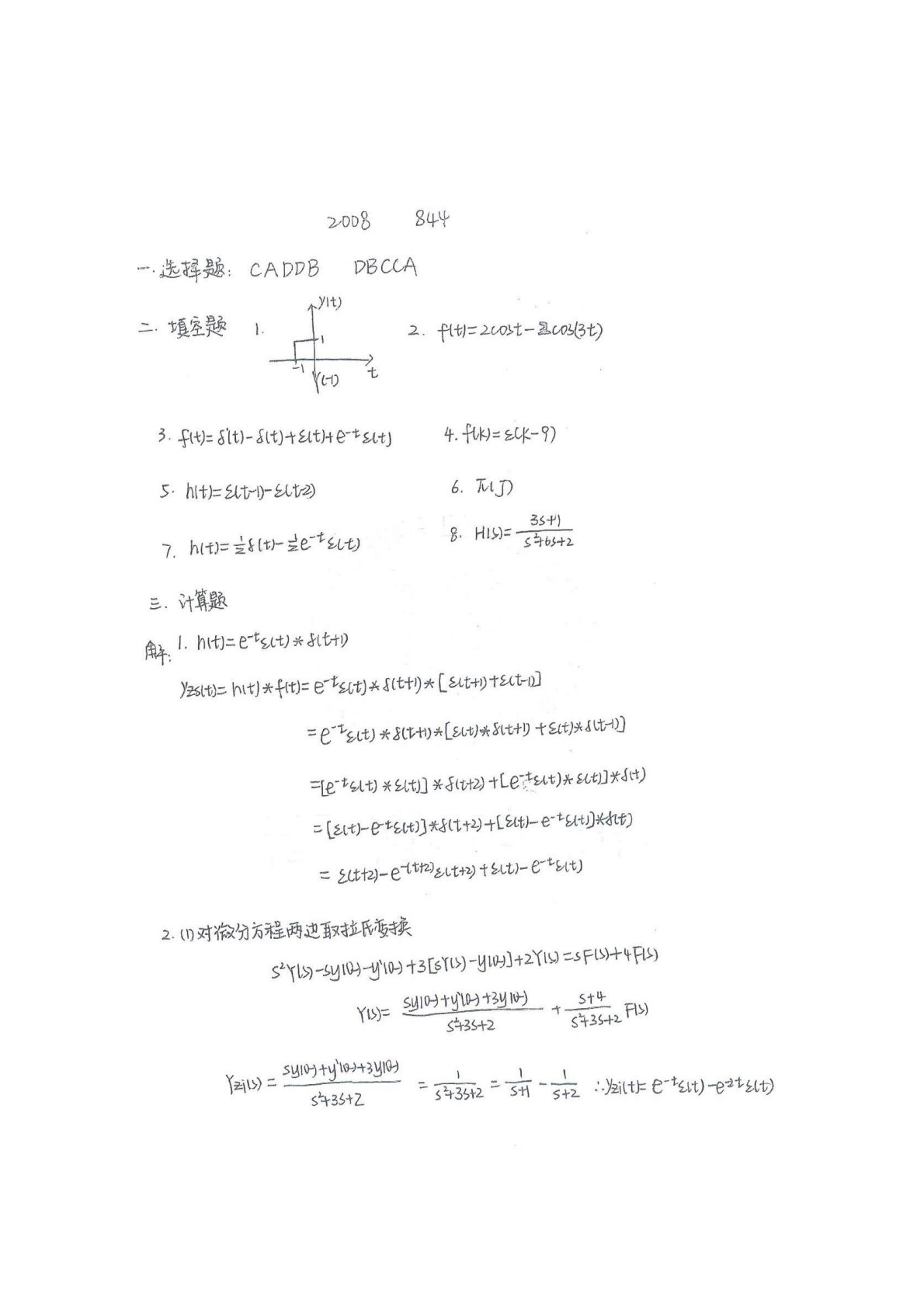 西安电子科技大学844信号与系统2008年真题答案手写版
