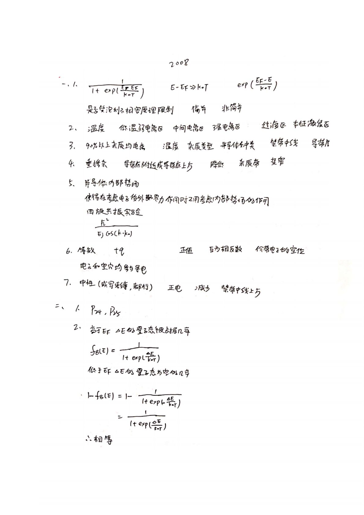西安电子科技大学801半导体物理2008年真题答案手写版