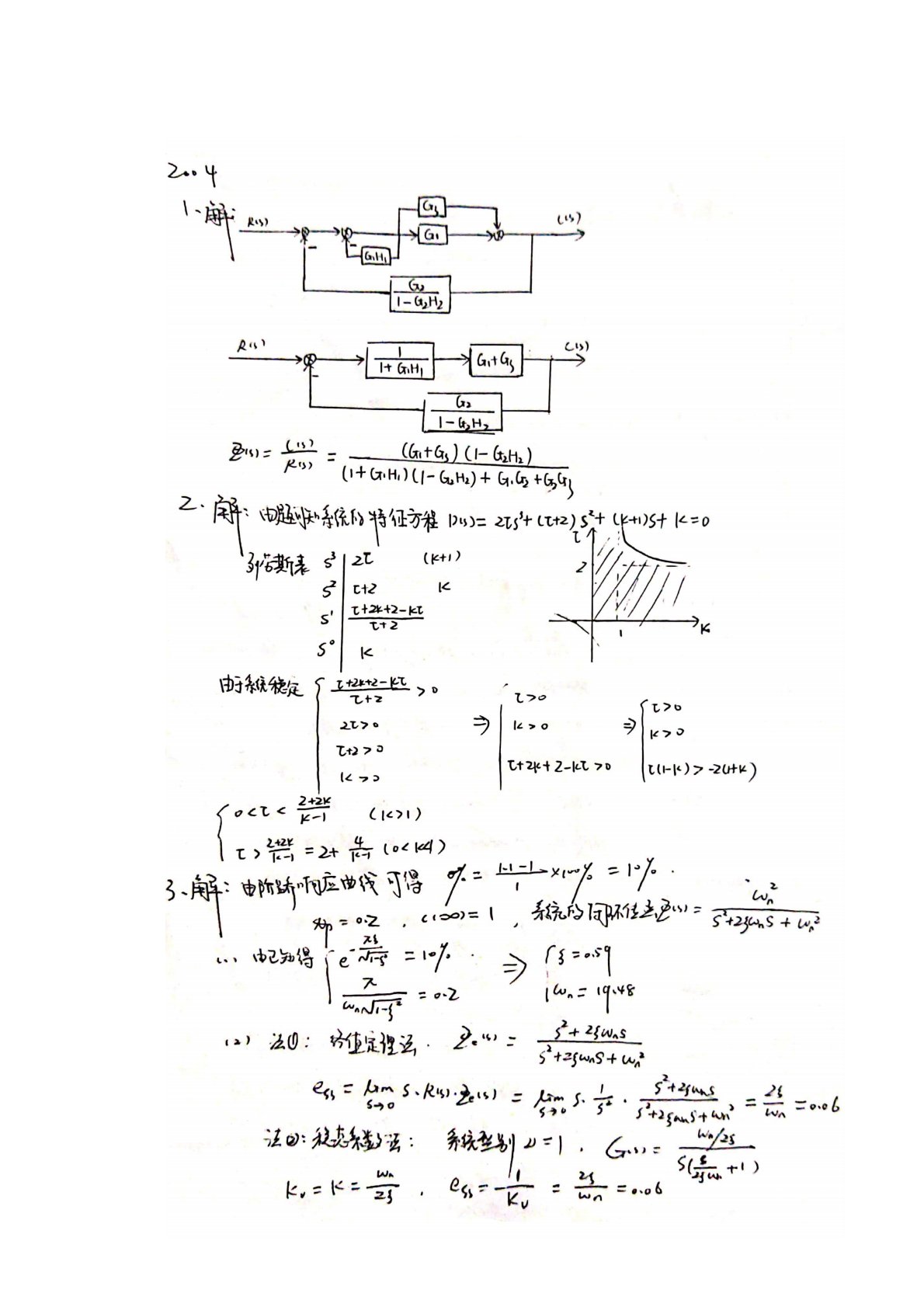 武汉理工大学848自动控制原理2004年真题答案手写版