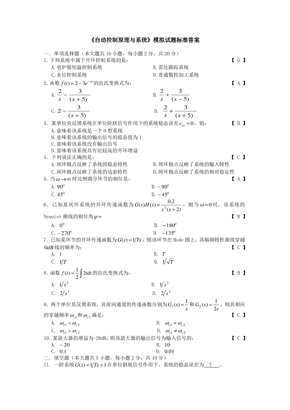 武汉理工大学848自动控制原理模拟题1及答案解析