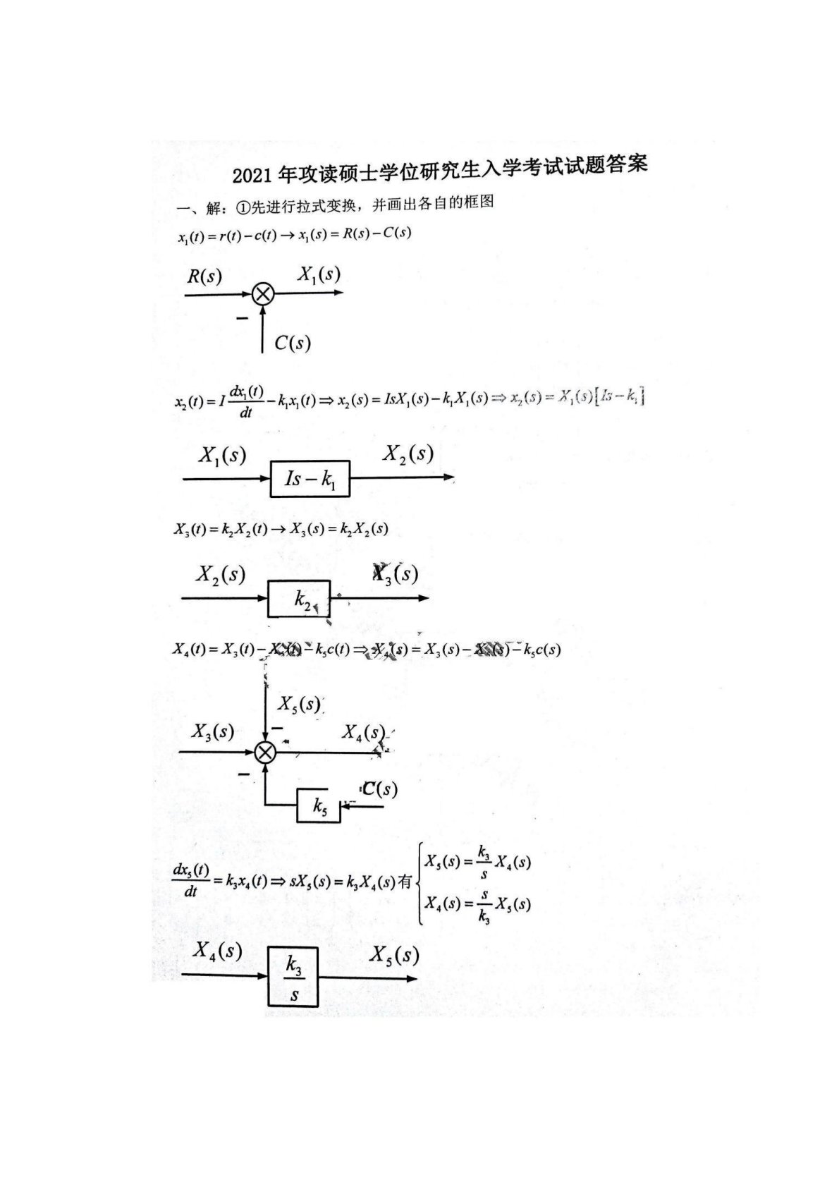 武汉理工大学848自动控制原理2021年真题答案