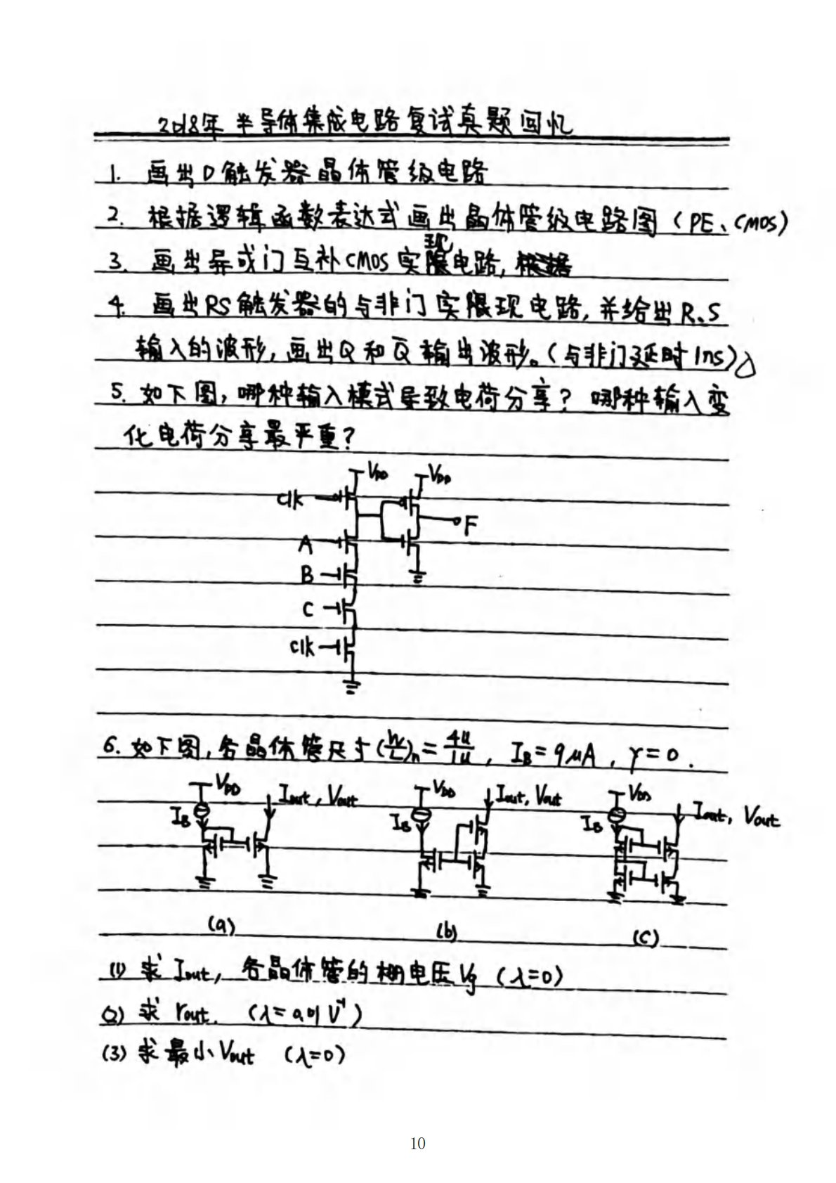 西安交通大学870CMOS集成电路设计2018年真题回忆版