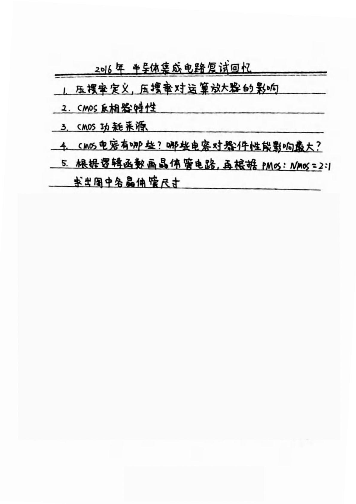 西安交通大学870CMOS集成电路设计2016年真题回忆版