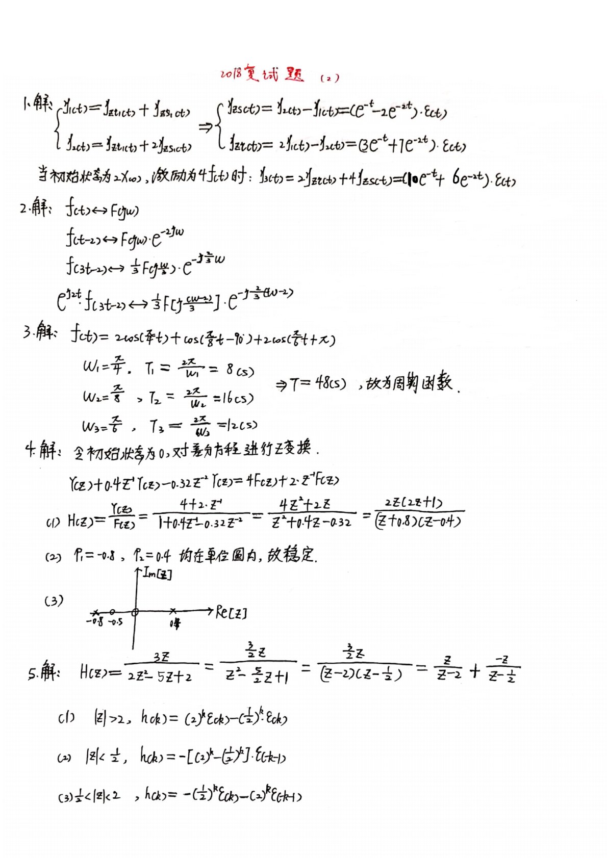 西安工业大学2018年811信号与系统考研真题复试试题答案解析