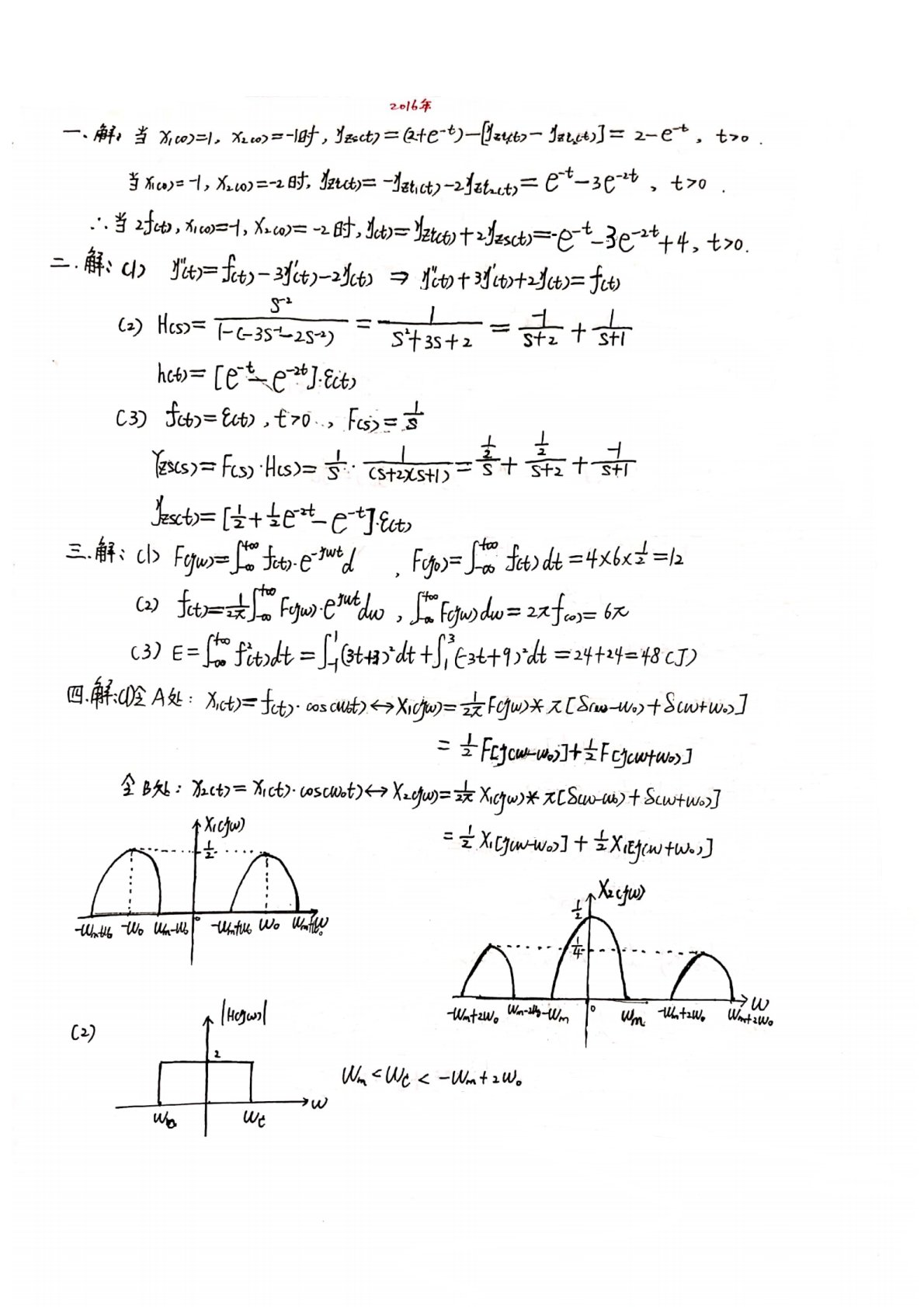 西安工业大学2016年811信号与系统考研真题答案解析