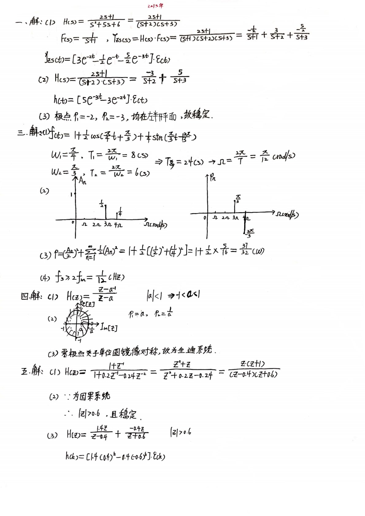 西安工业大学2015年811信号与系统考研真题答案解析