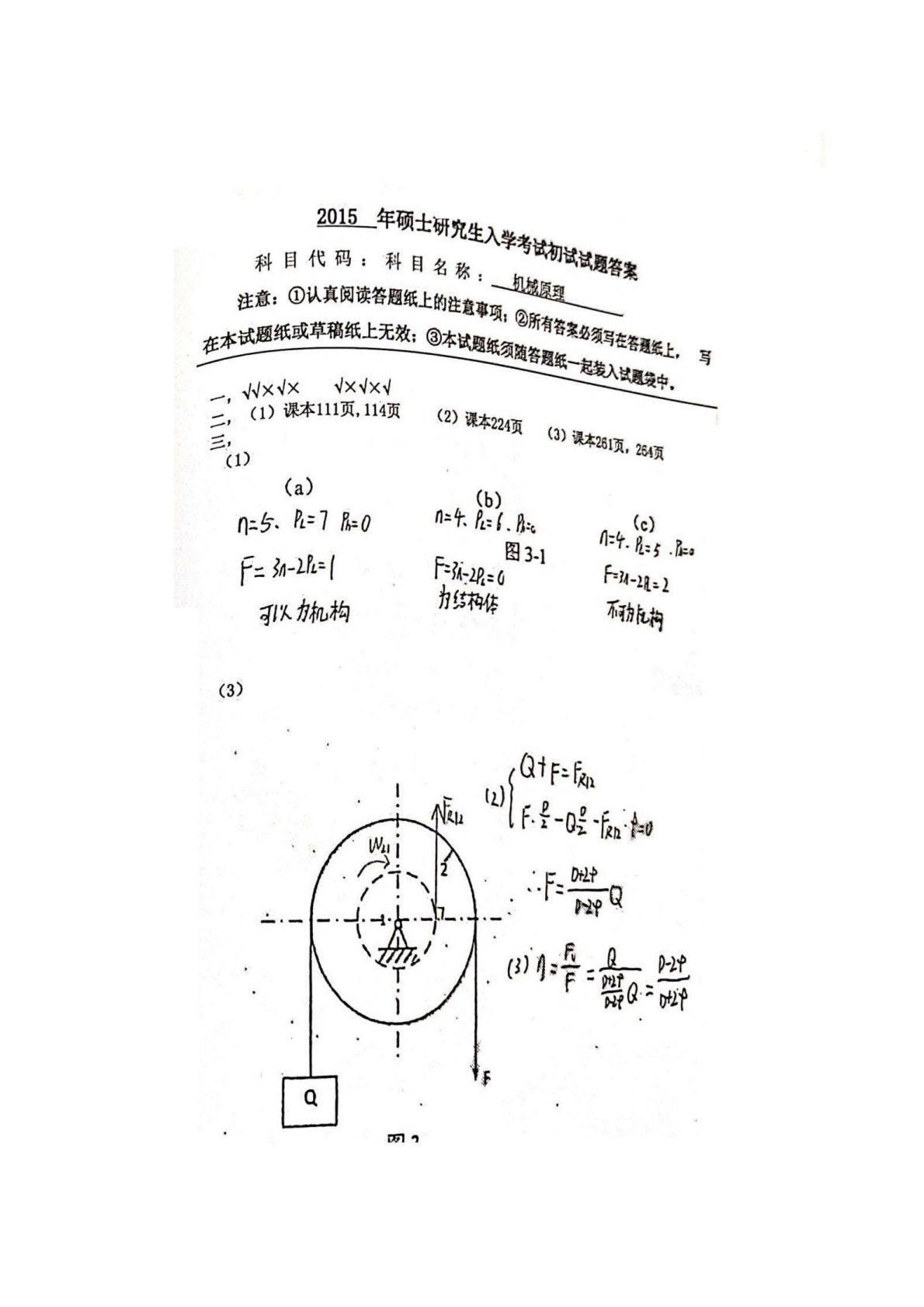 西安电子科技大学841机械原理2015年真题答案手写版