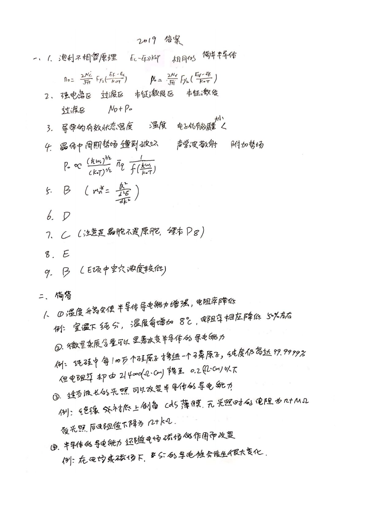 西安电子科技大学801半导体物理2019年真题答案手写版