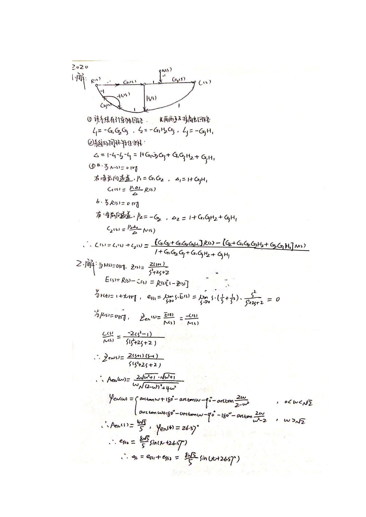 武汉理工大学848自动控制原理2020年真题答案手写版
