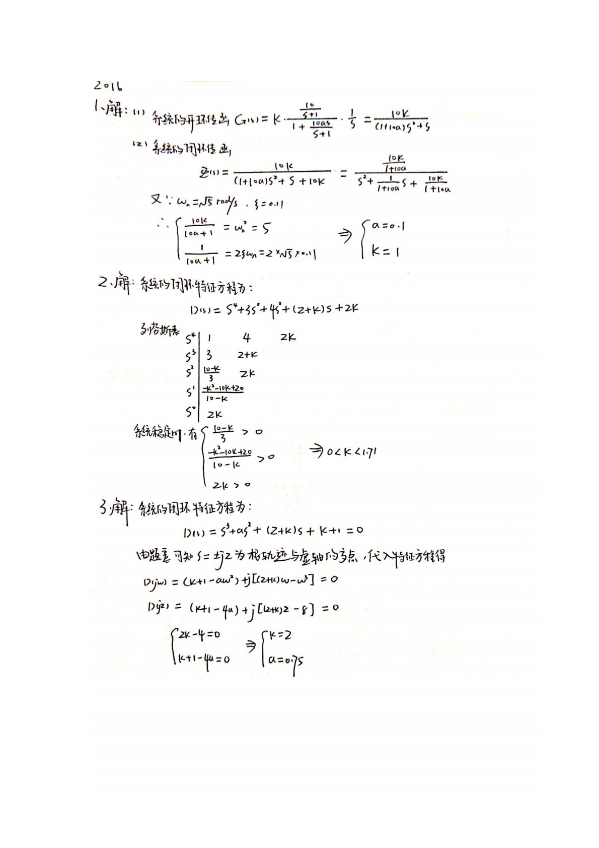 武汉理工大学848自动控制原理2016年真题答案手写版