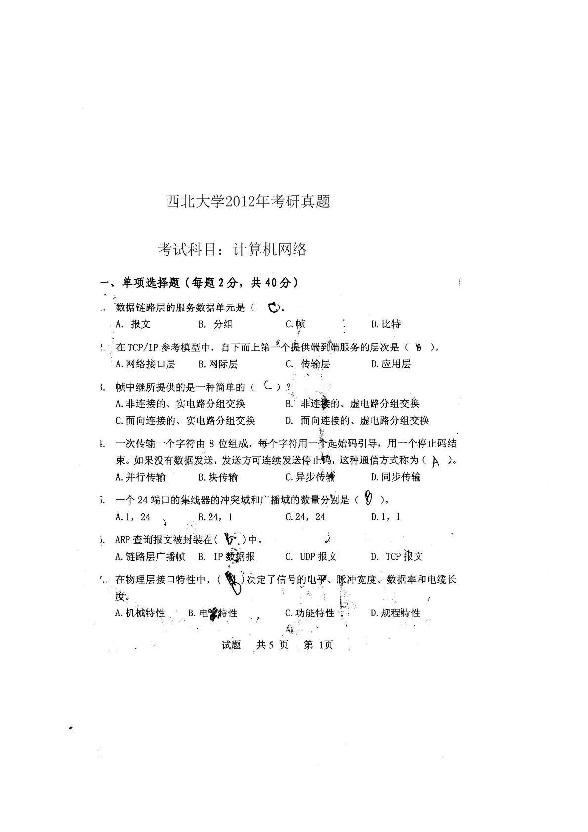 西北大学计算机类专业综合(数据库、计算机组成原理、面向对象程序设计)2012年真题