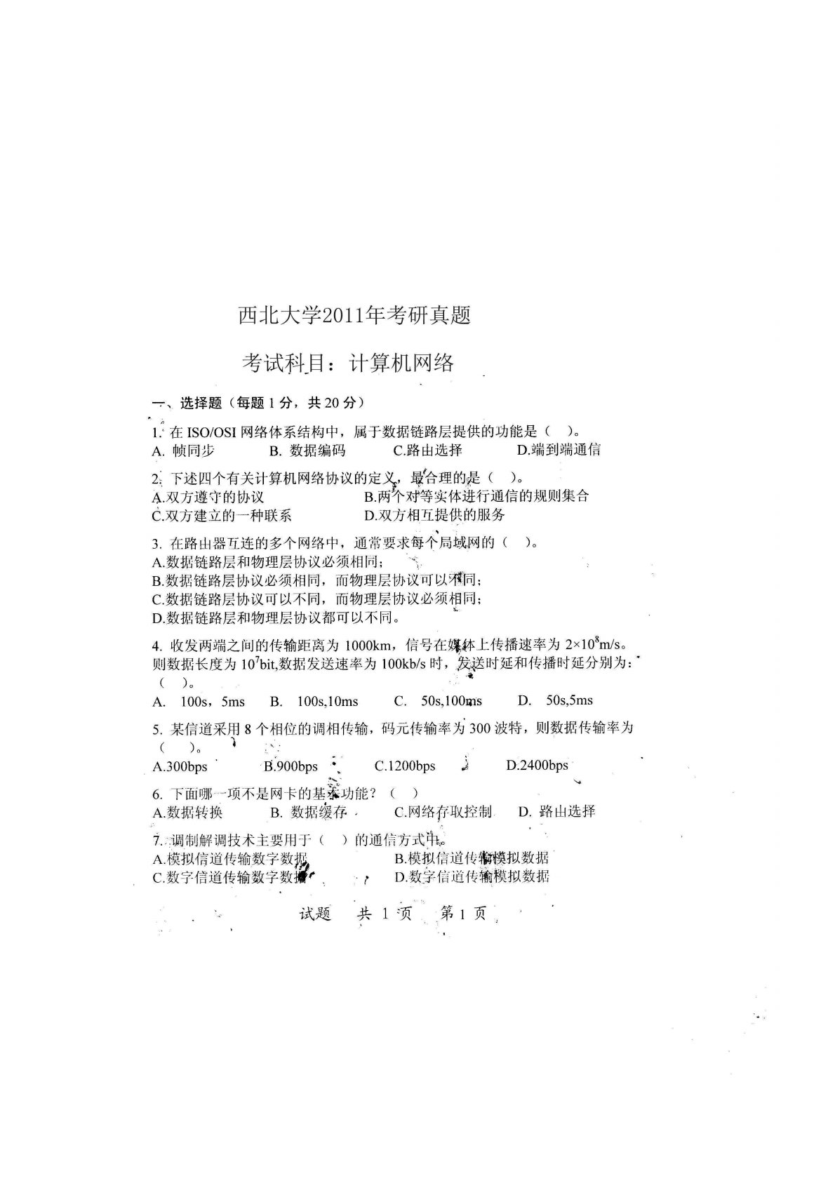 西北大学计算机类专业综合(数据库、计算机组成原理、面向对象程序设计)2011年真题