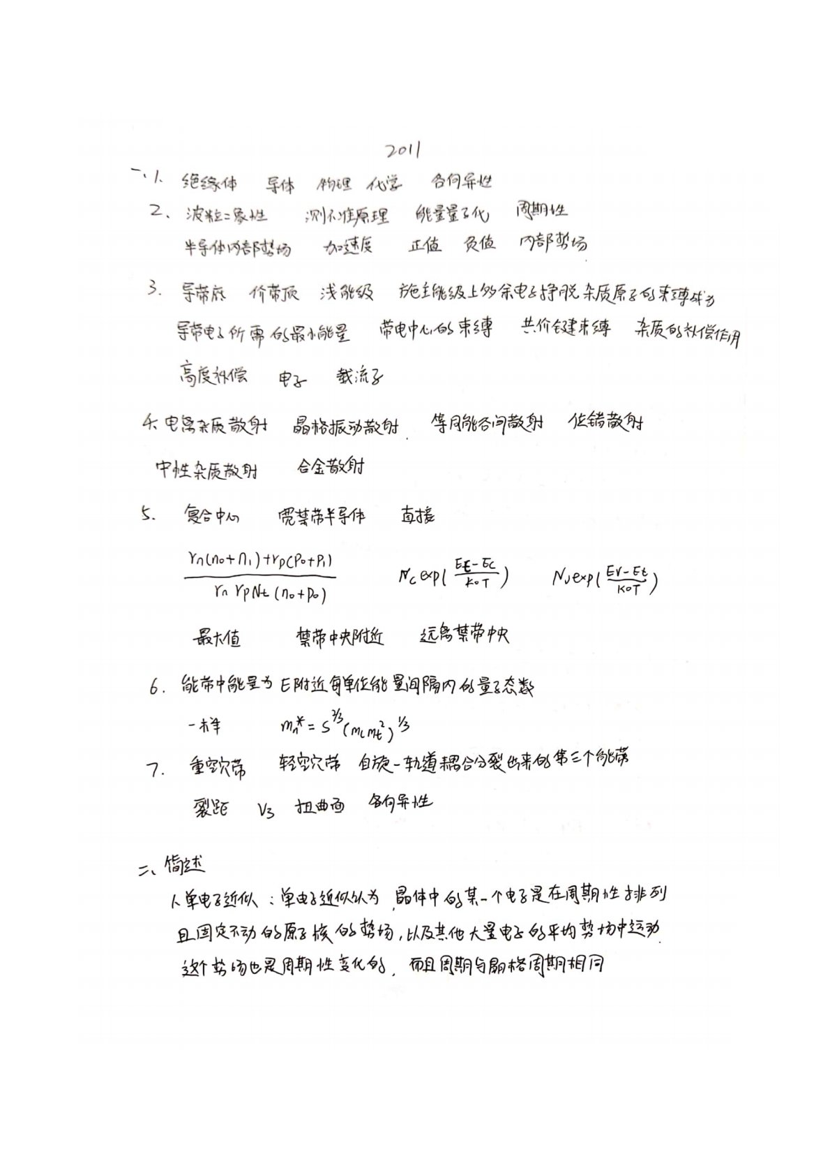 西安电子科技大学801半导体物理2011年真题答案手写版