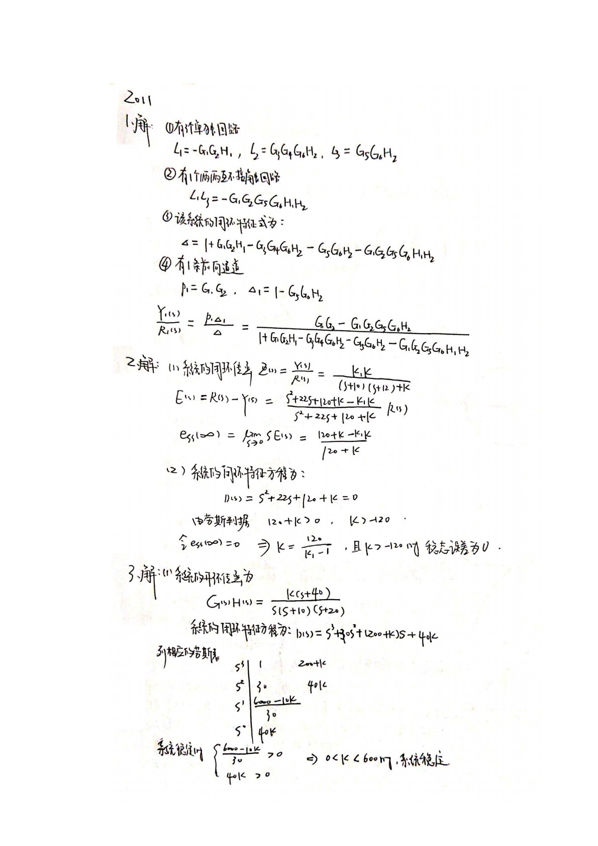 武汉理工大学848自动控制原理2011年真题答案手写版