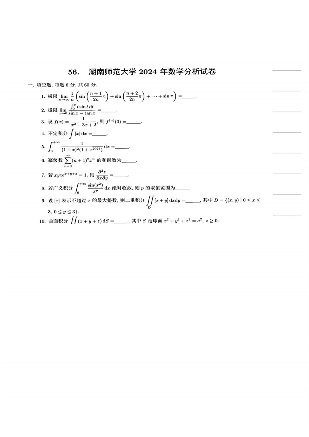 湖南师范大学741数学分析2024年真题