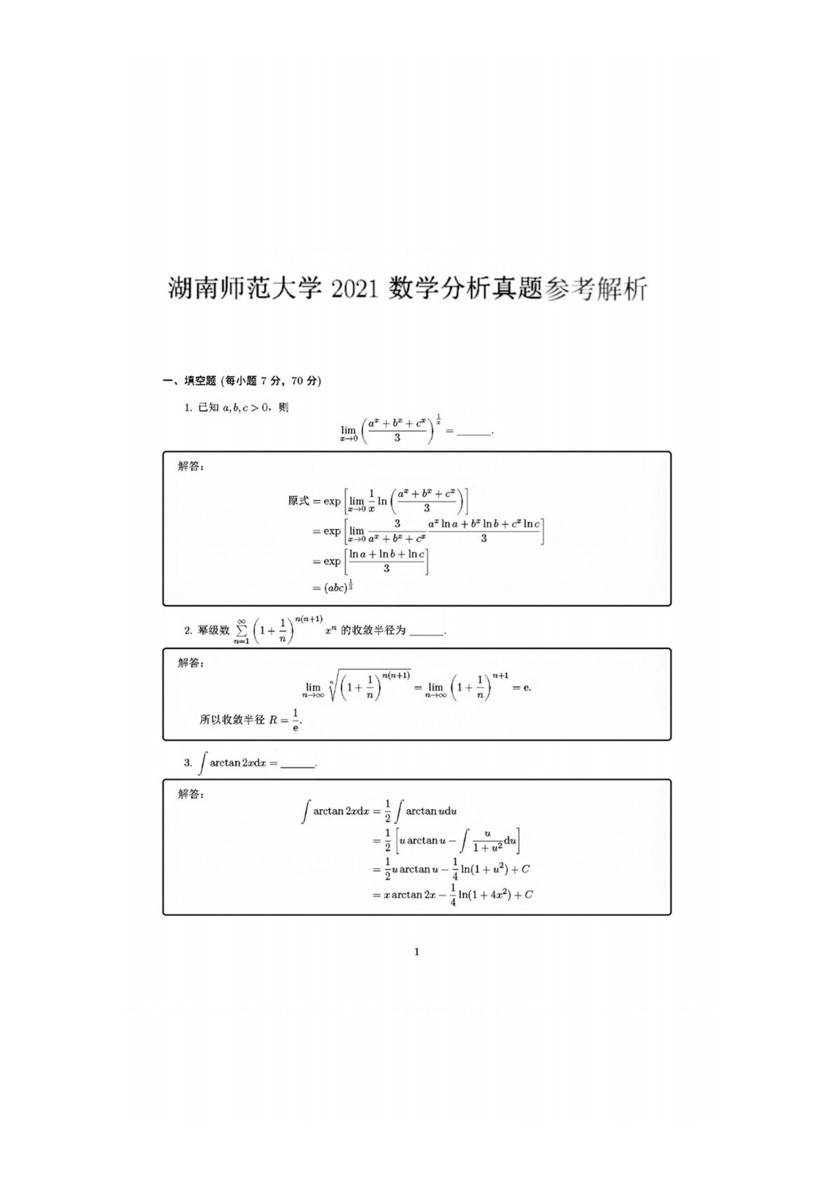 湖南师范大学741数学分析2021年真题答案1