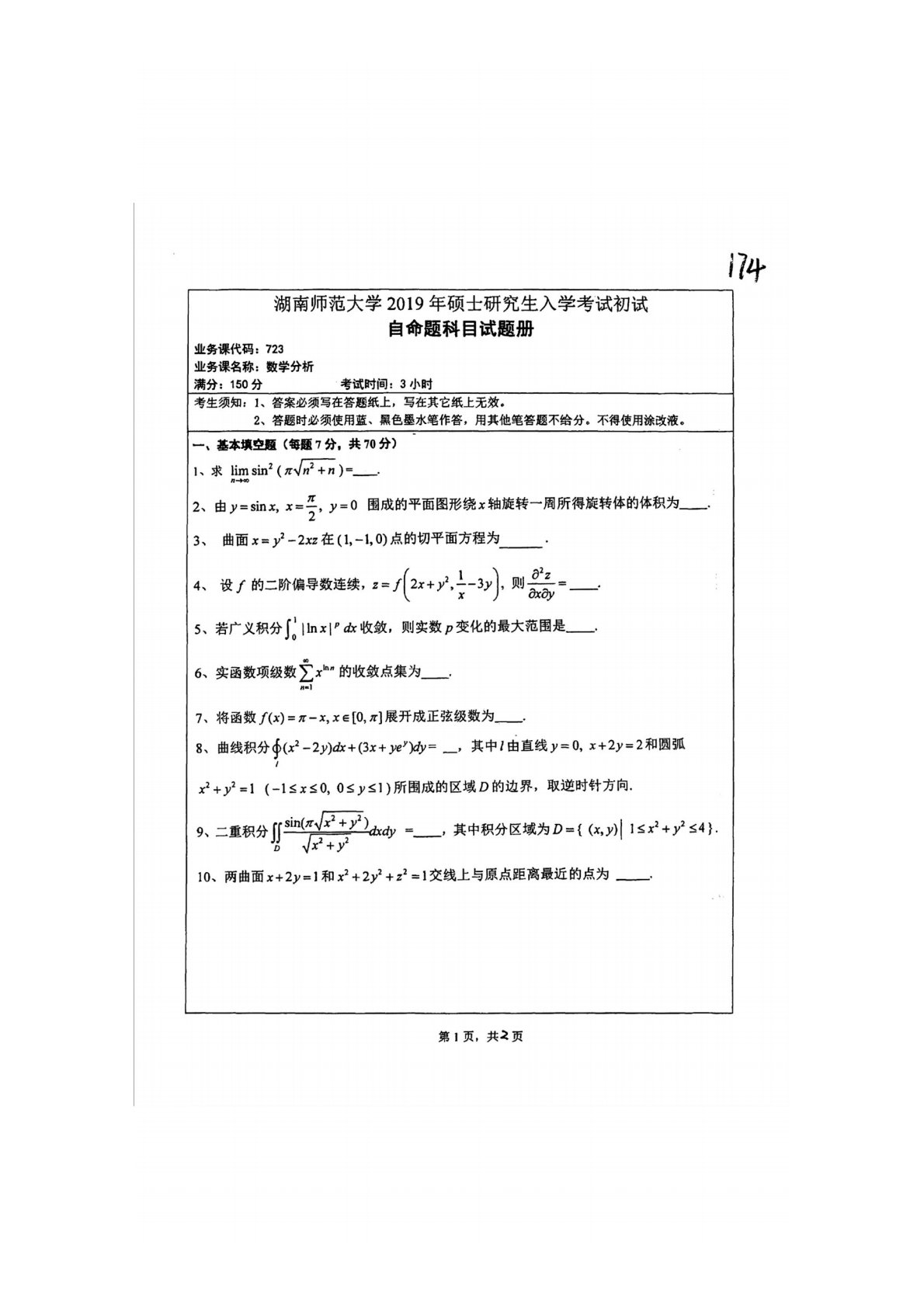 湖南师范大学741数学分析2019年真题