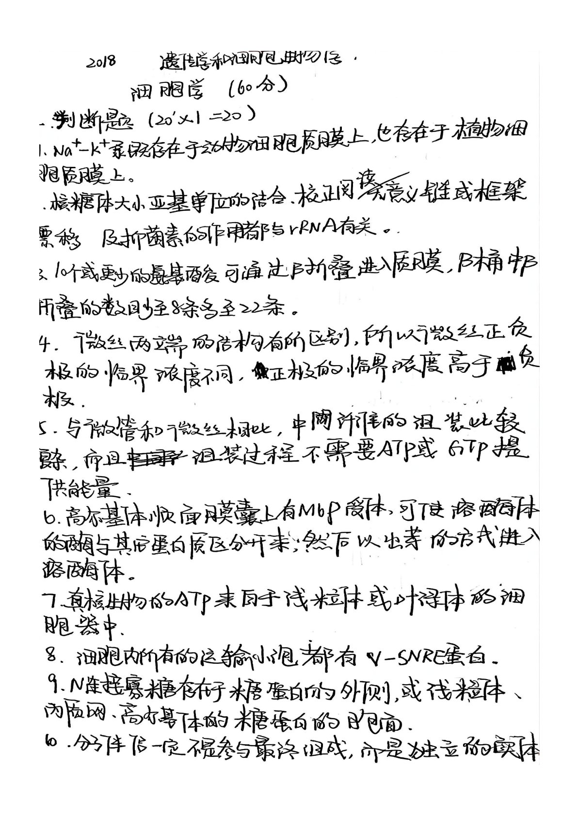 复旦大学873遗传学与细胞生物学2018年真题回忆版