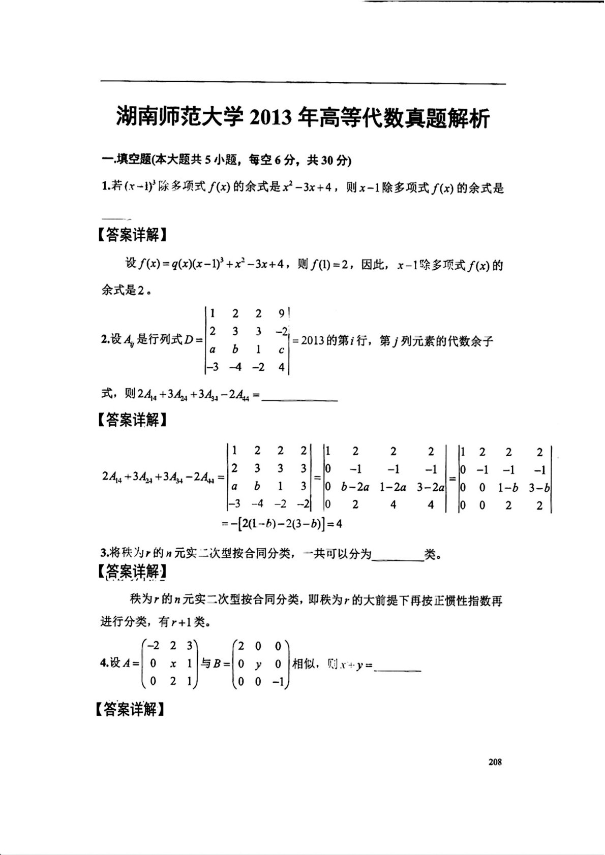 湖南师范大学852高等代数2013年真题答案