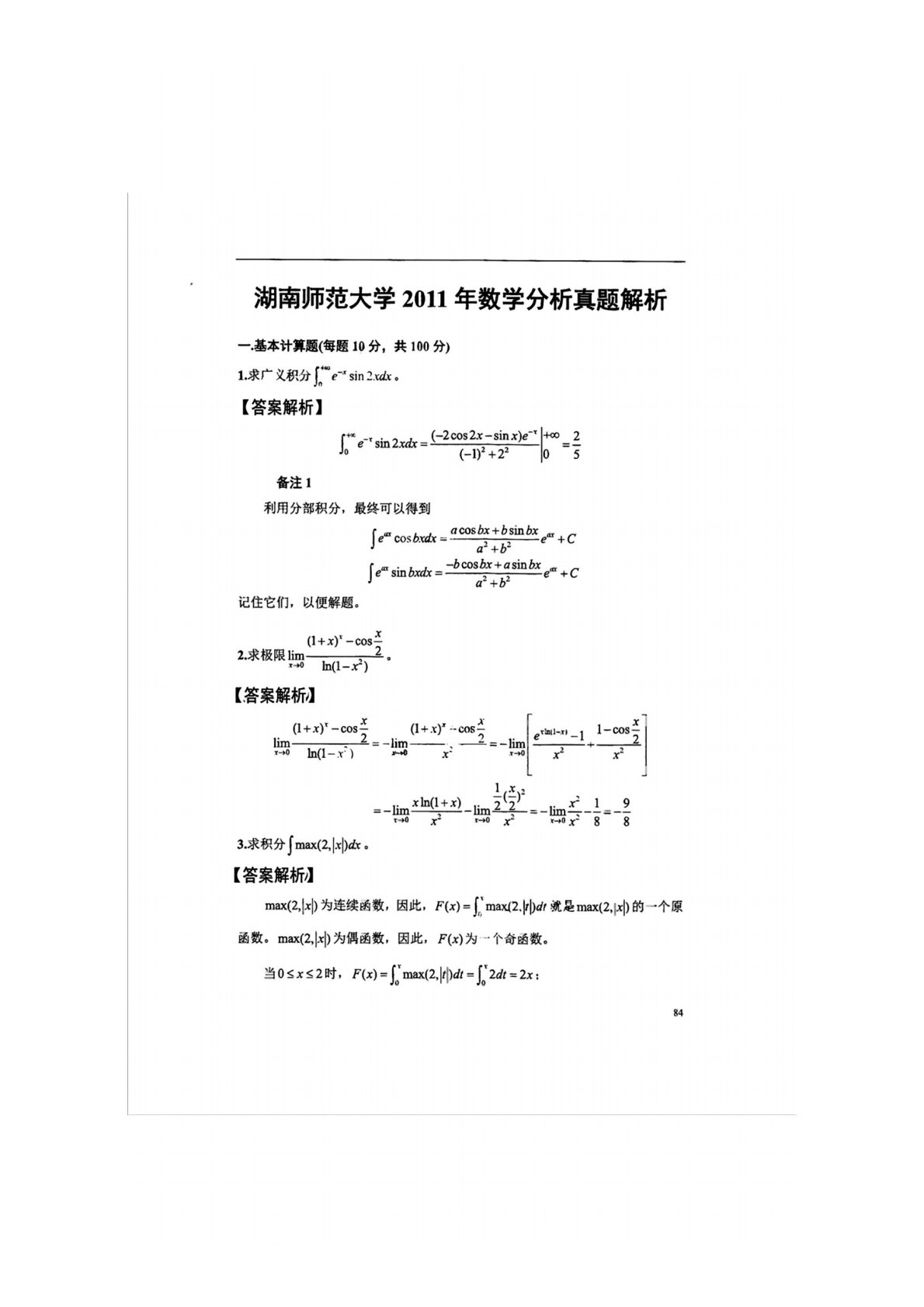湖南师范大学741数学分析2011年真题答案