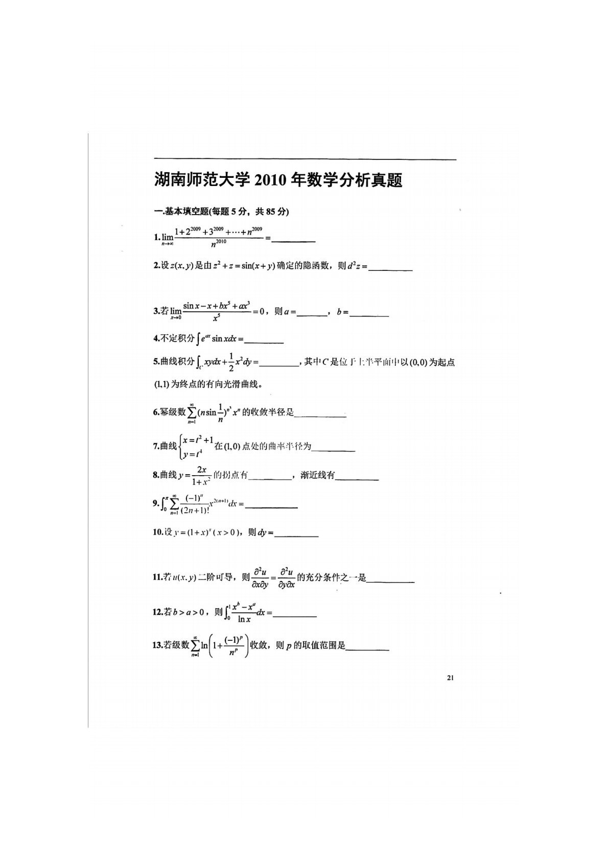 湖南师范大学741数学分析2010年真题