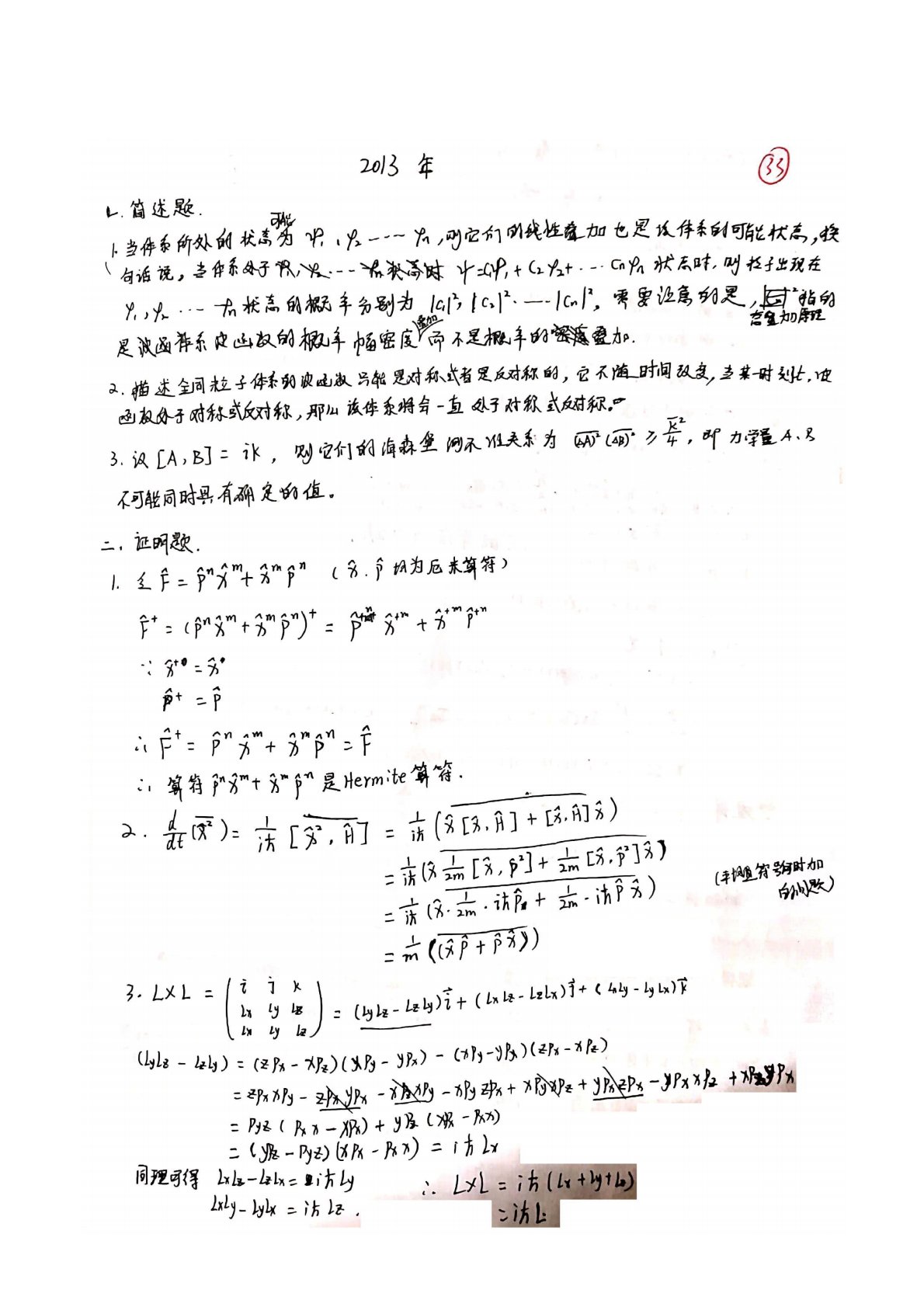 湖南师范大学725量子力学2013年考研真题答案