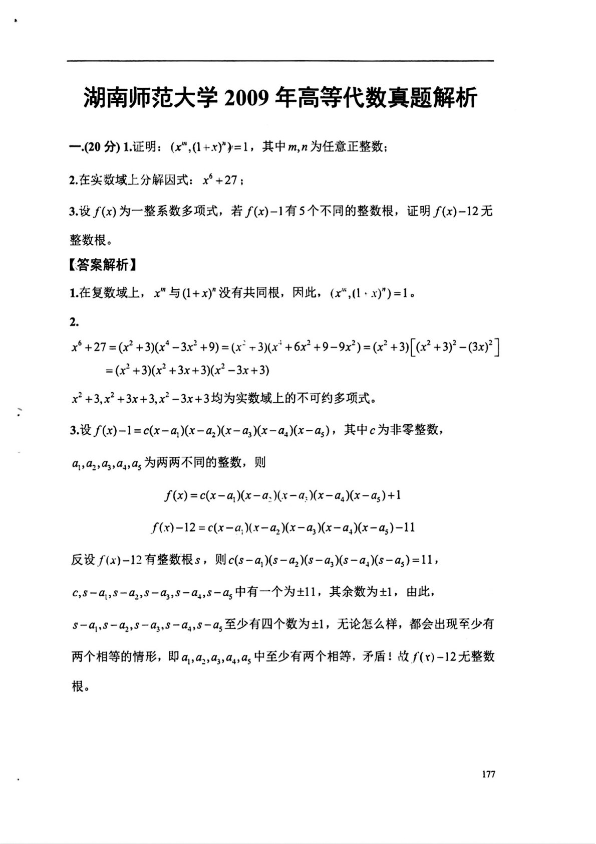 湖南师范大学852高等代数2009年真题答案