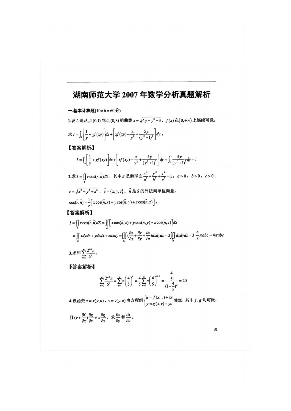 湖南师范大学741数学分析2007年真题答案
