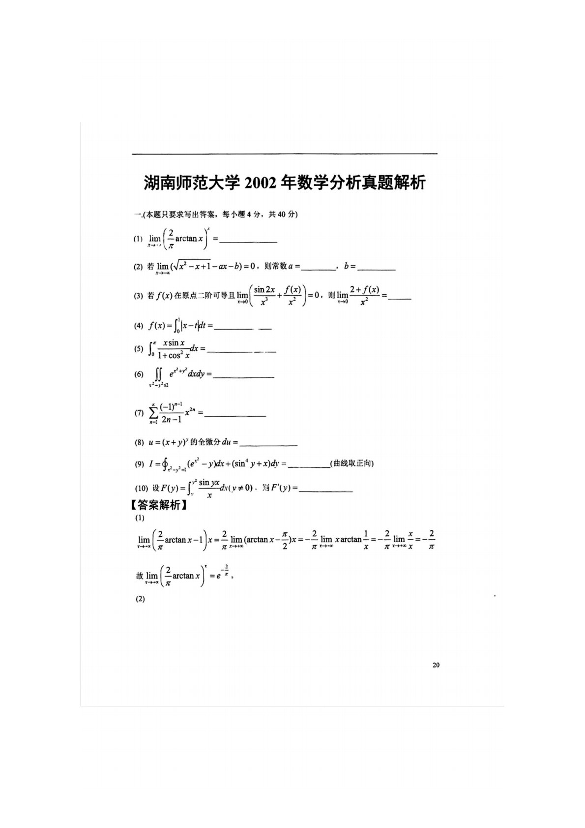 湖南师范大学741数学分析2002年真题答案