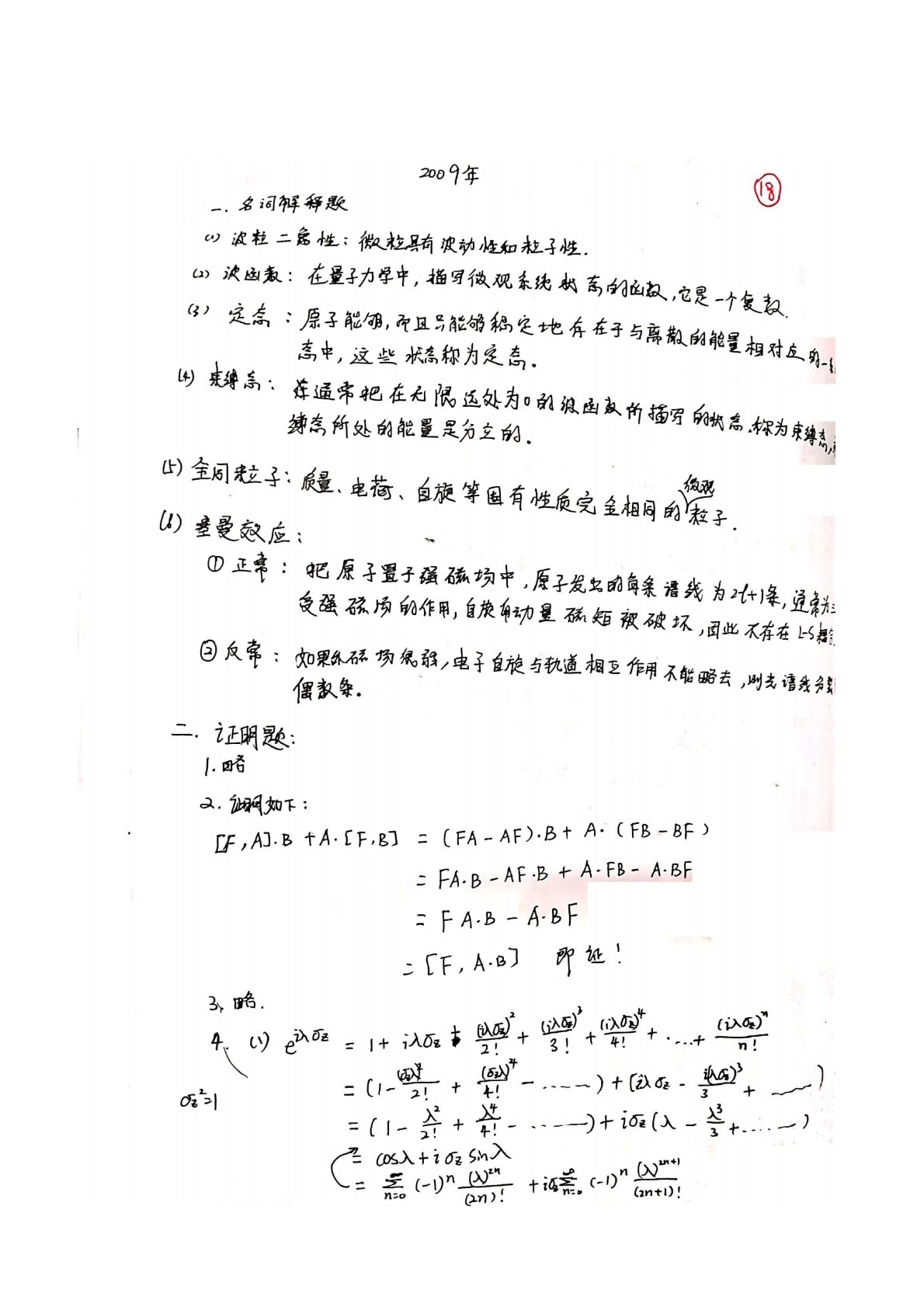 湖南师范大学725量子力学2009年考研真题答案