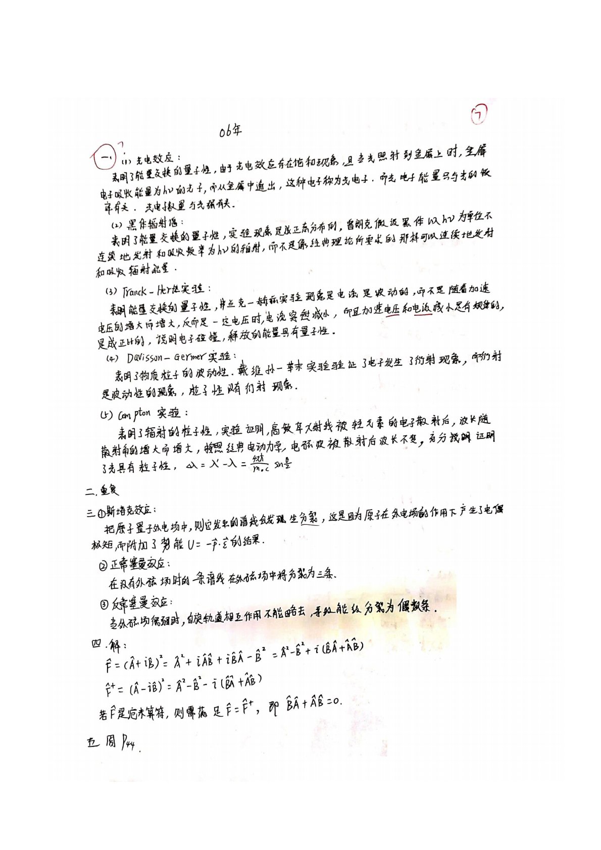 湖南师范大学725量子力学2006年考研真题答案