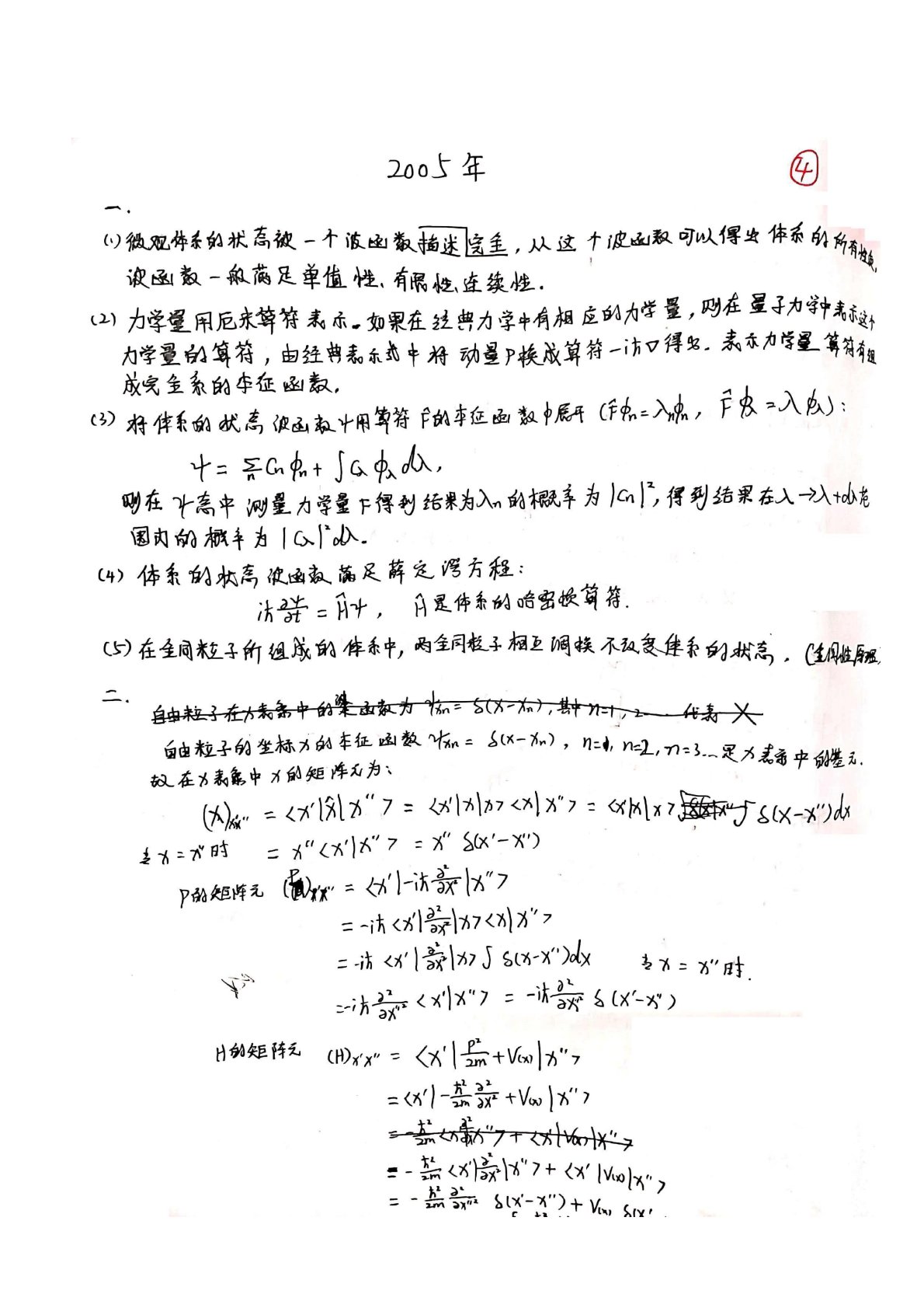 湖南师范大学725量子力学2005年考研真题答案