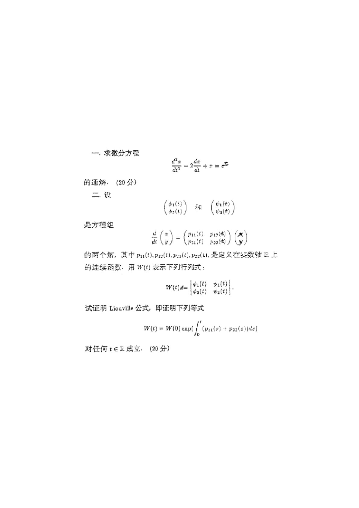 复旦大学719分析1999年真题(常微分方程)