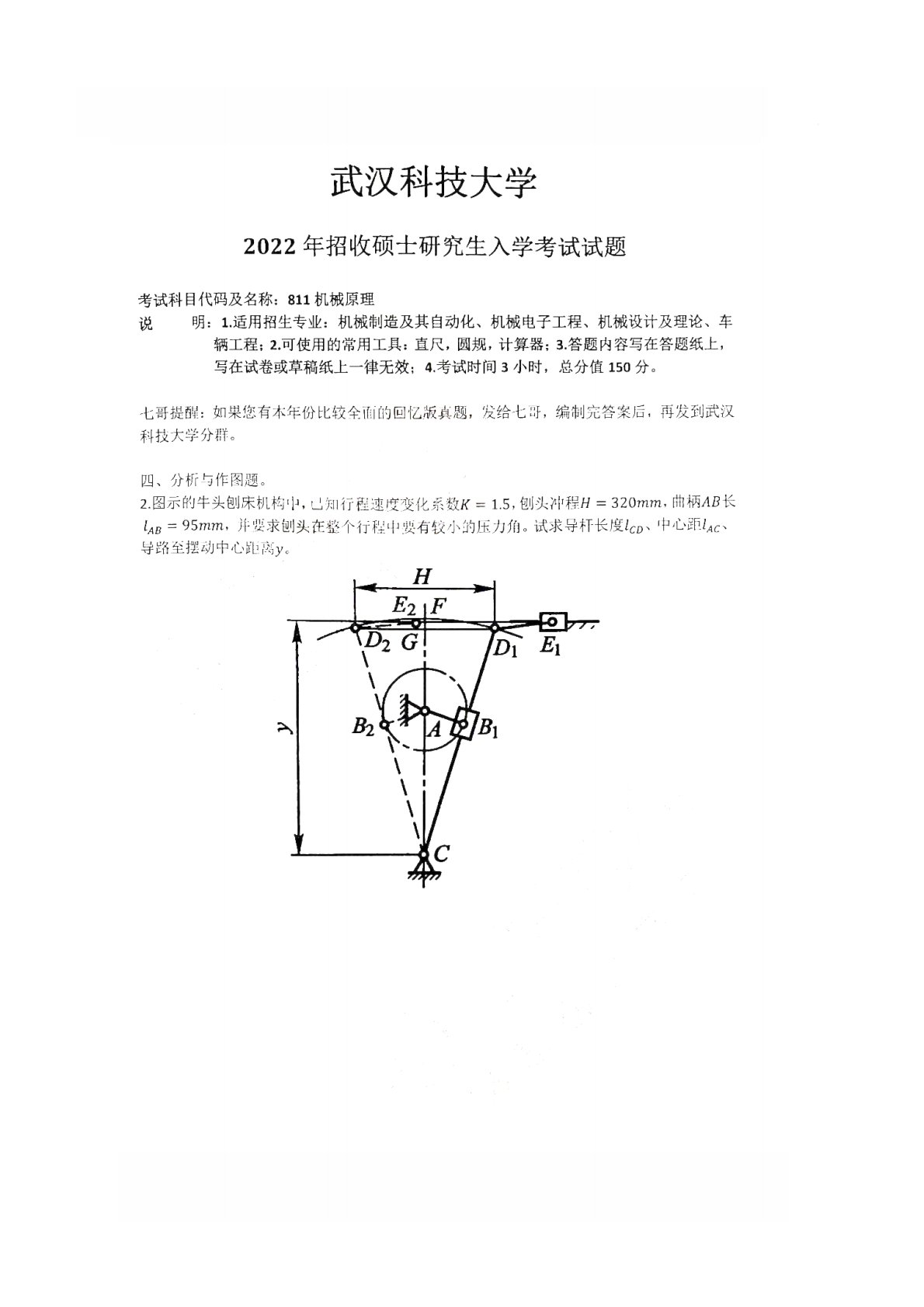 武汉科技大学811机械原理2022年真题答案
