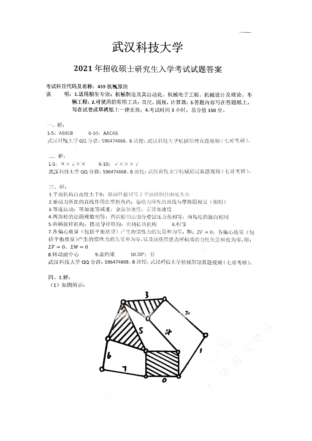 武汉科技大学811机械原理2021年真题答案