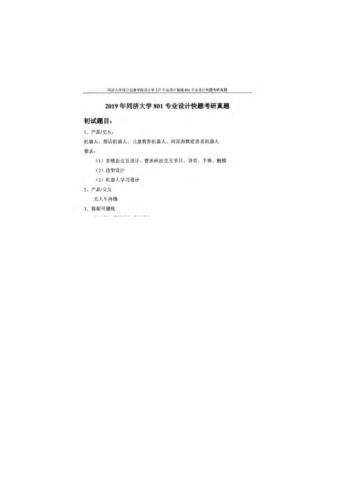 同济大学901专业设计快题2019年真题