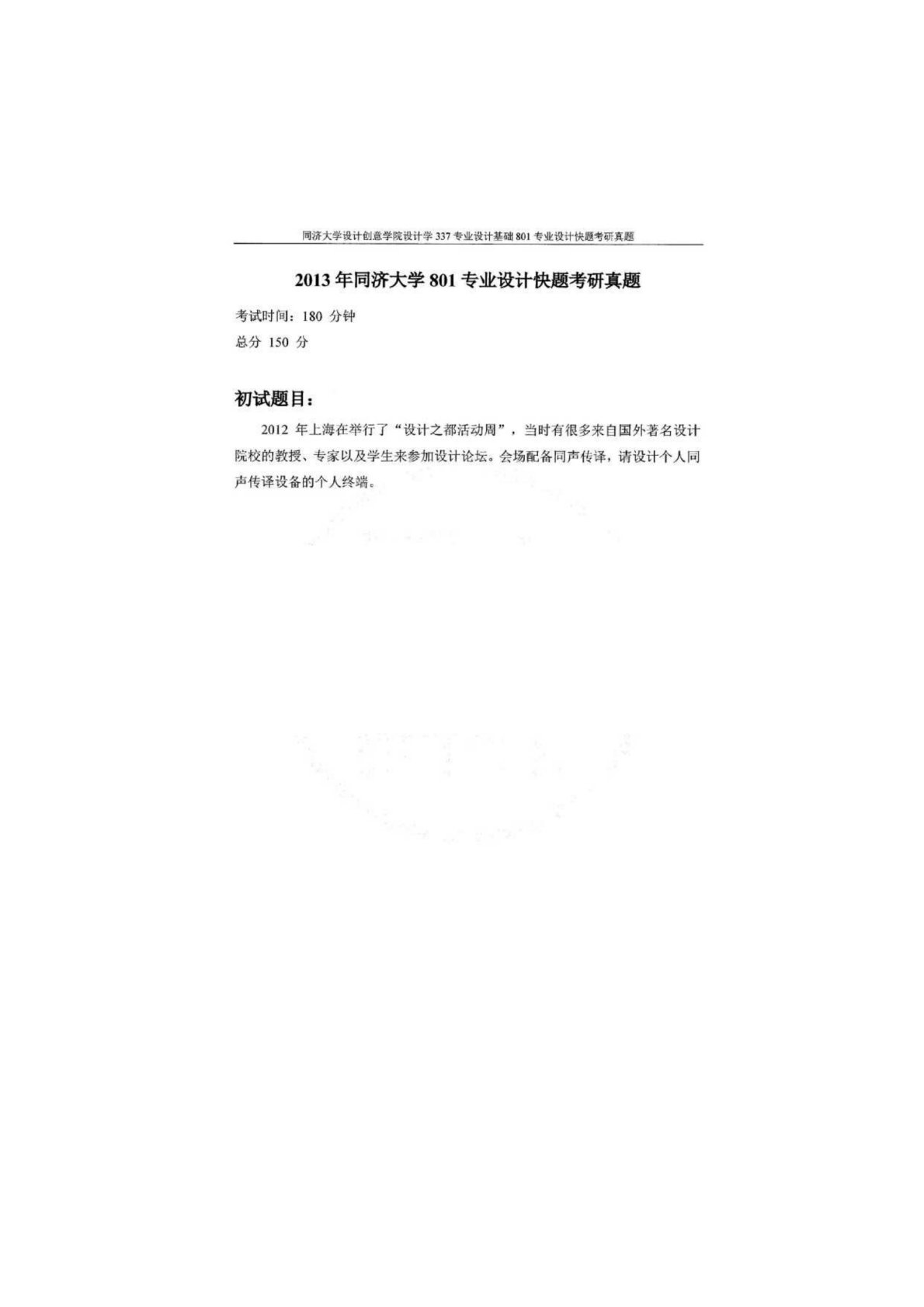 同济大学901专业设计快题2013年真题