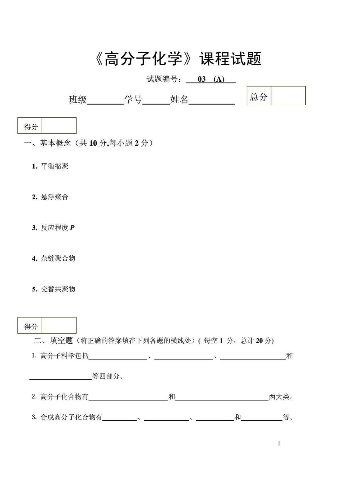 天津科技大学833高分子化学试题