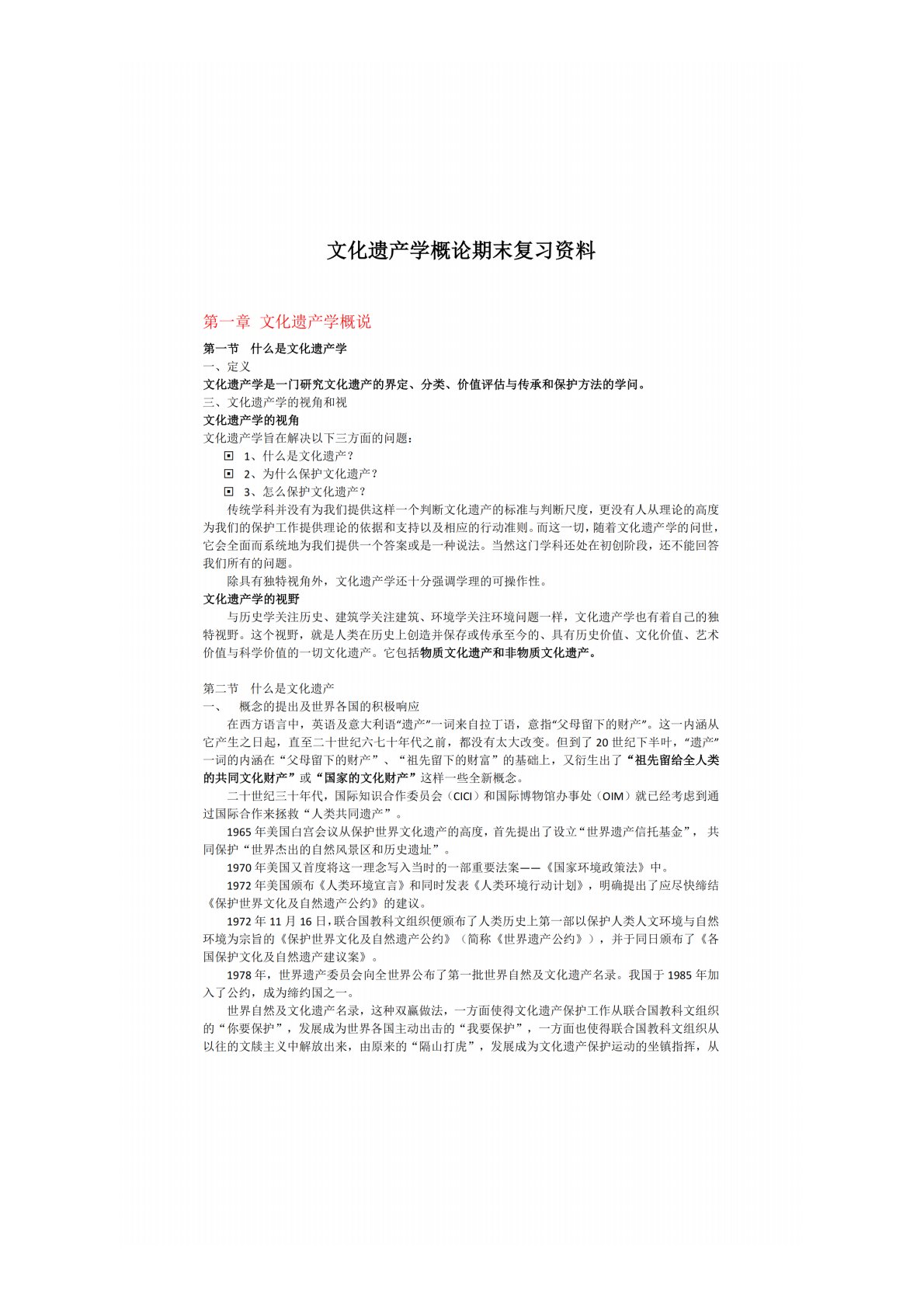 黑龙江大学735考古学专业基础文化遗产学概论期末复习资料(1)