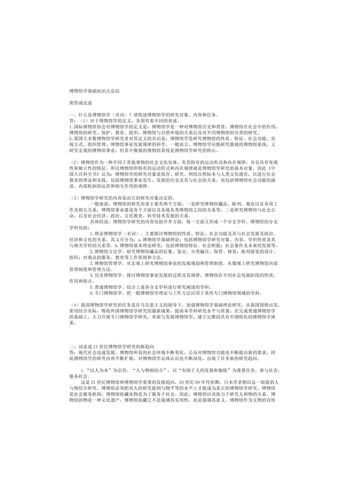 黑龙江大学735考古学专业基础博物馆学概论简答论述总结