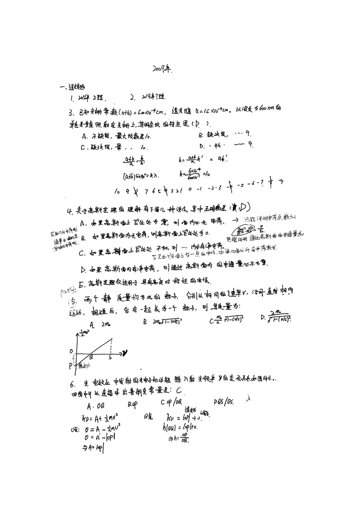 西北大学633普通物理2009年真题及答案手写版