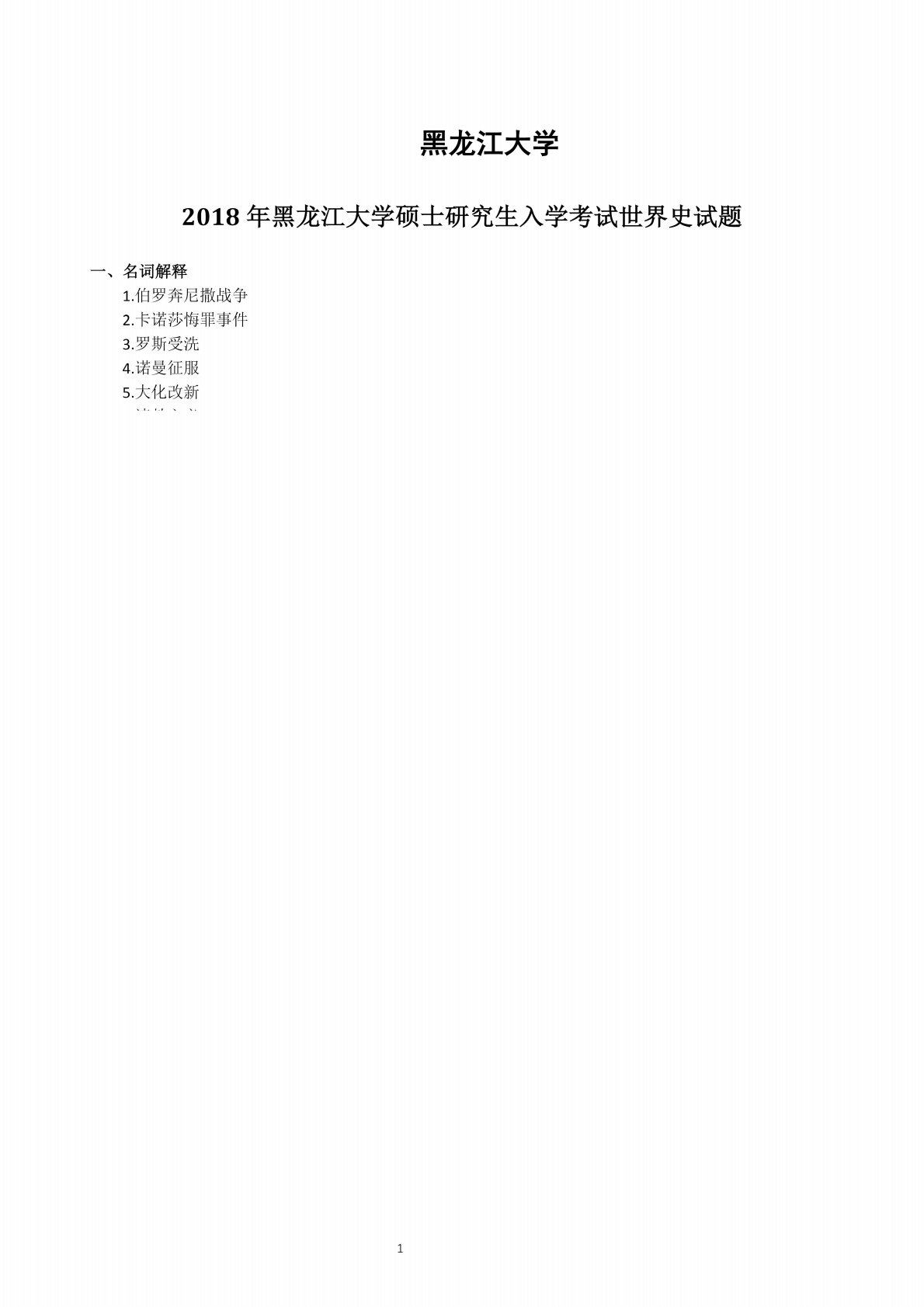 黑龙江大学737历史学基础(世界史)2018年考研真题