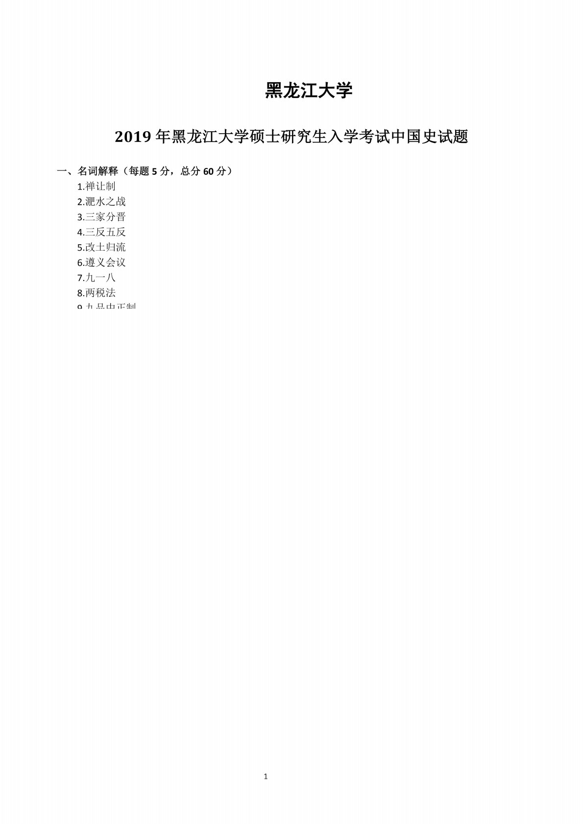 黑龙江大学736历史学基础(中国史)2019年考研真题