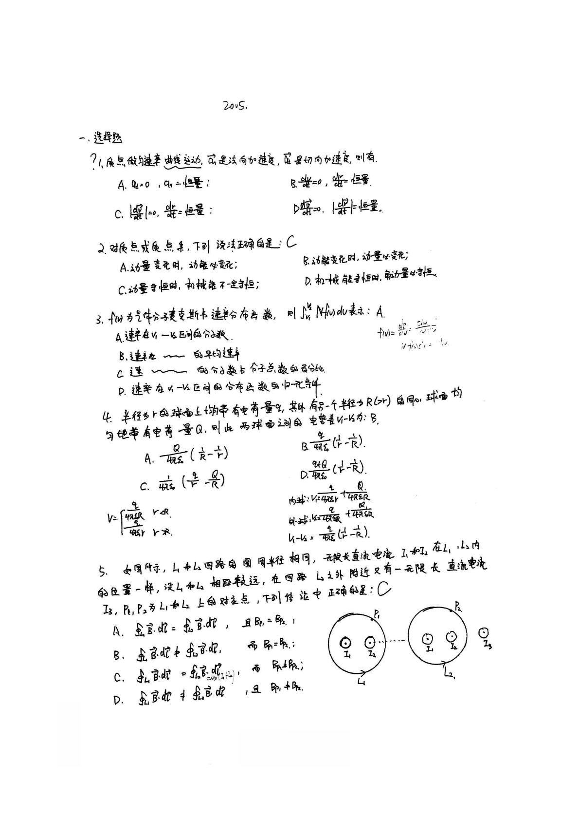 西北大学633普通物理2005年真题及答案手写版