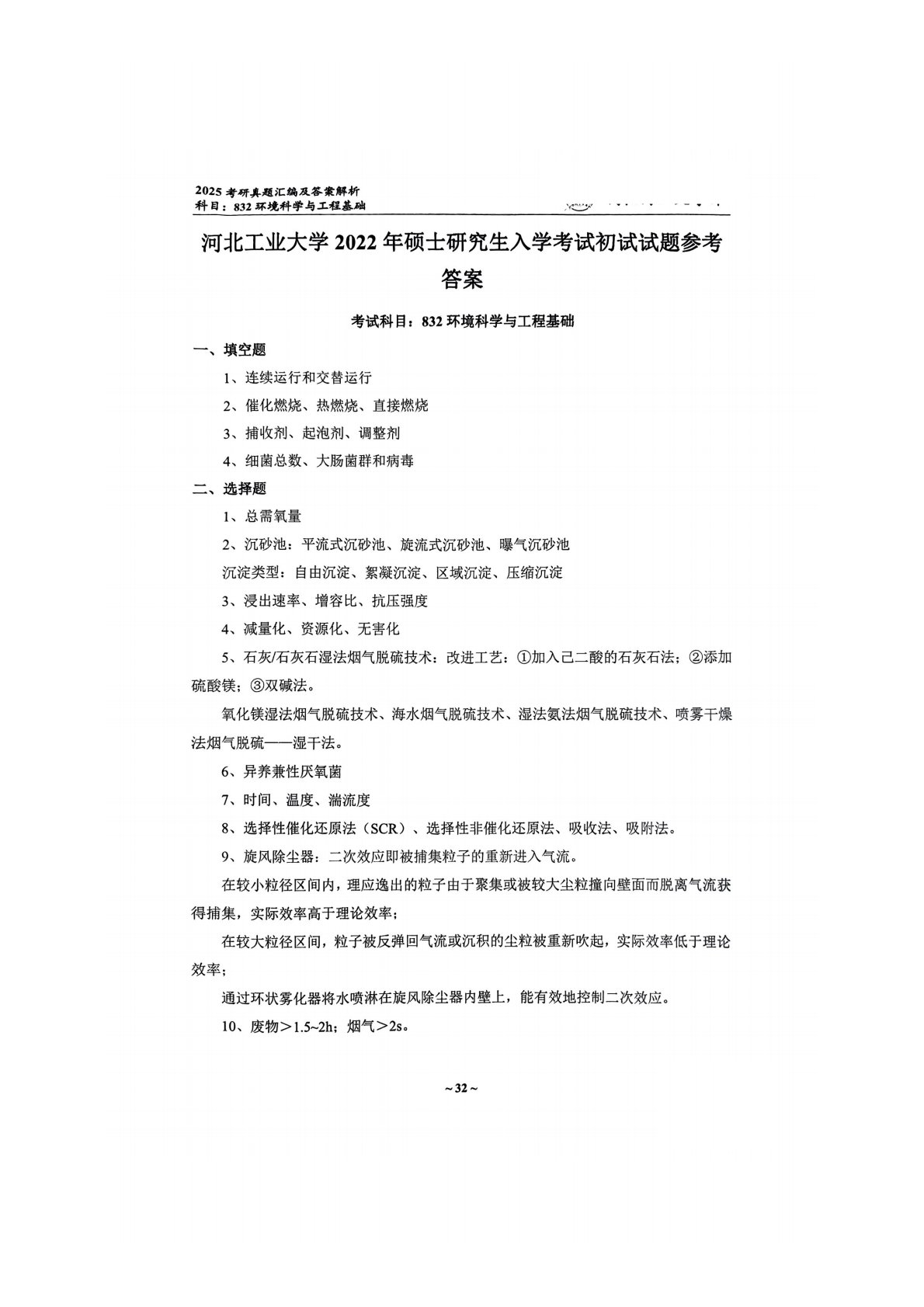 河北工业大学832环境科学与工程2022年真题答案