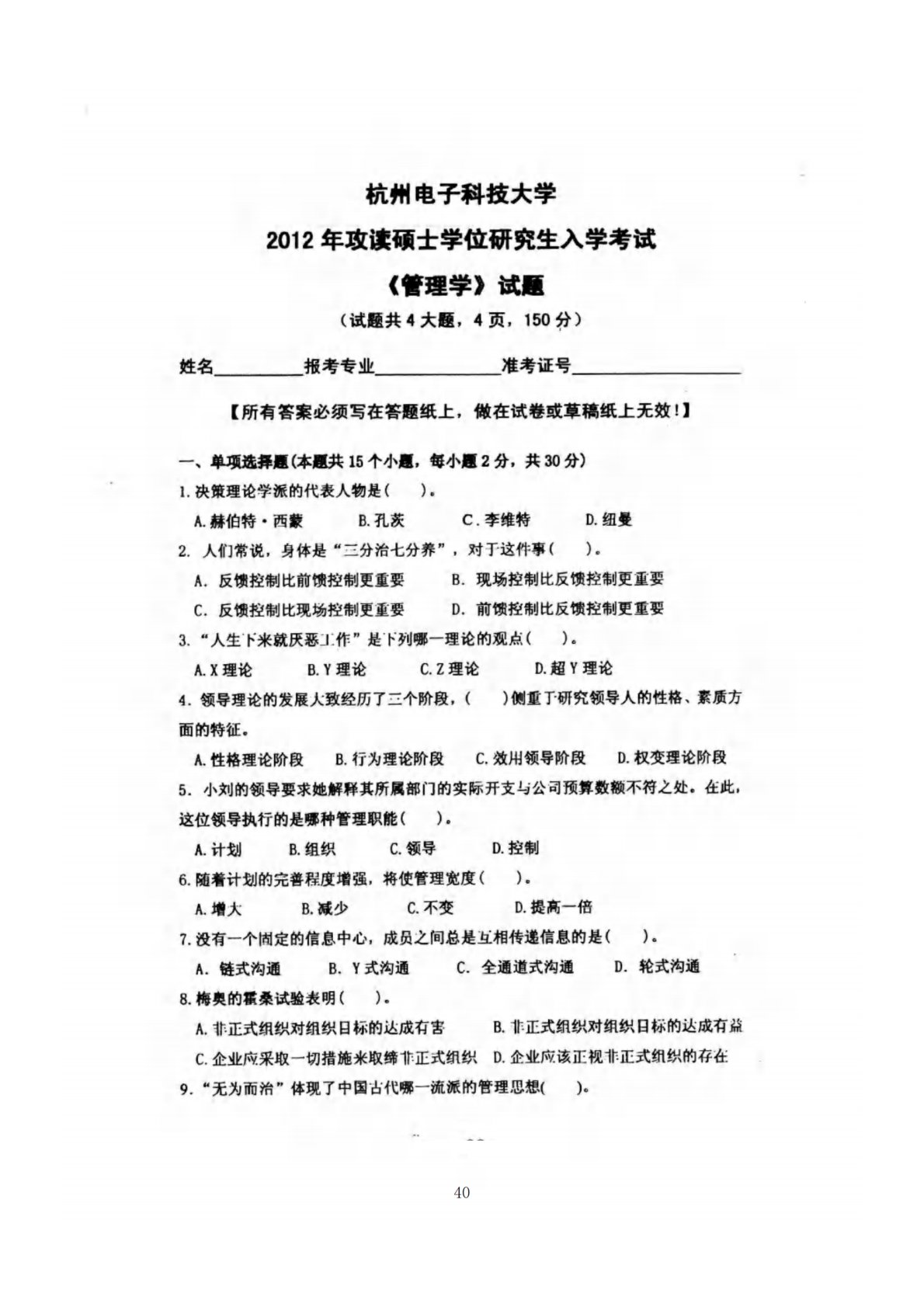 杭州电子科技大学831管理学2012年真题