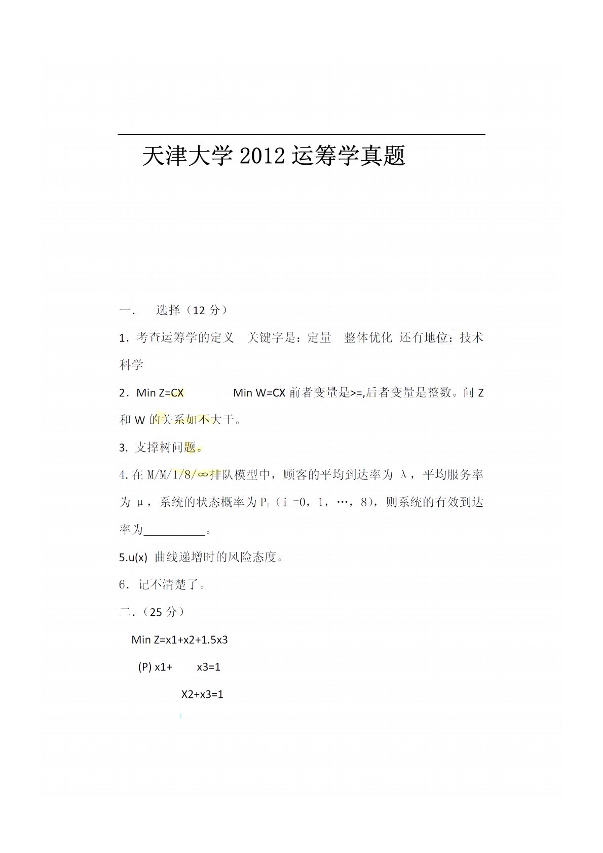合肥工业大学846运筹与管理运筹学2012年真题