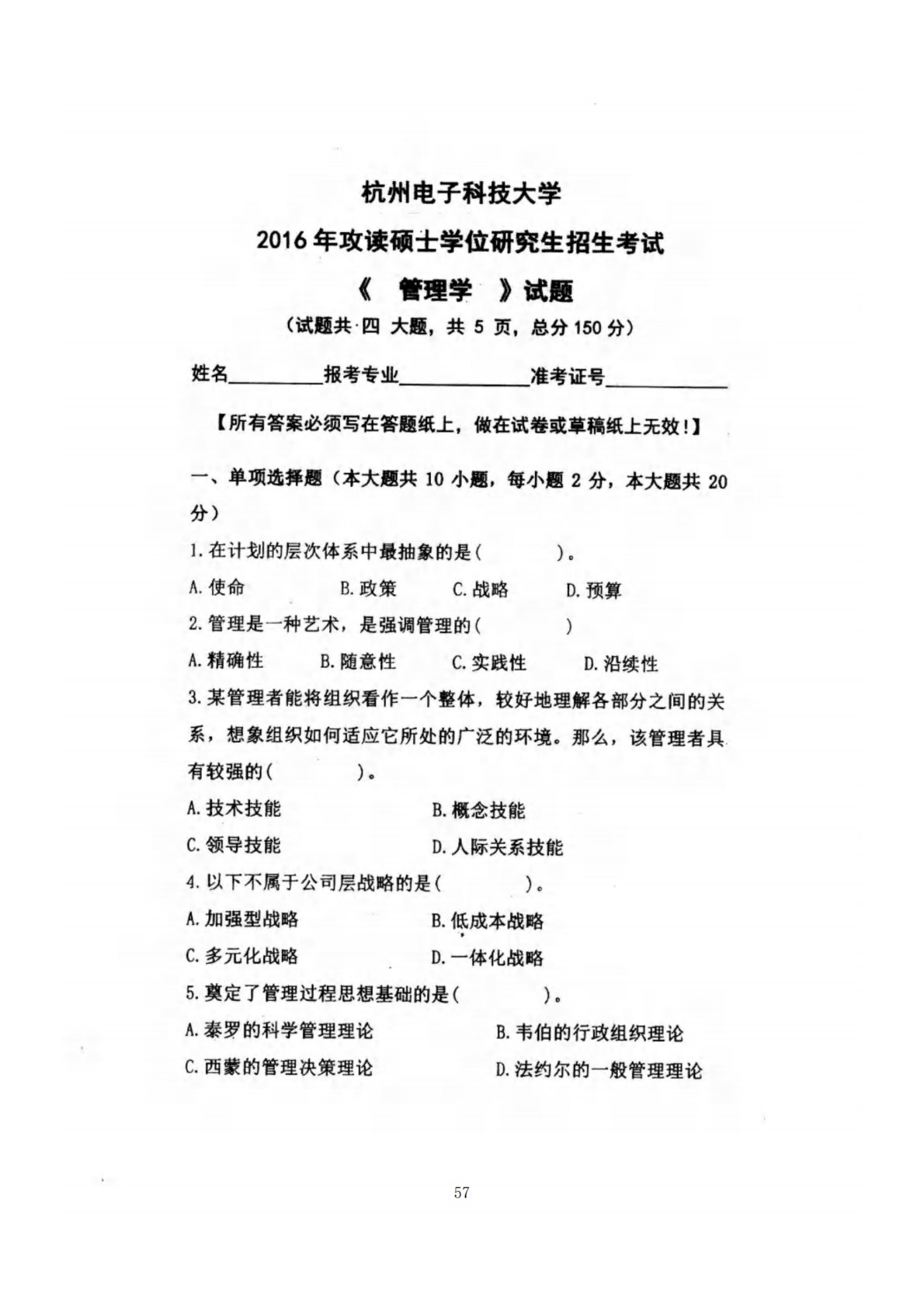 杭州电子科技大学831管理学2016年真题