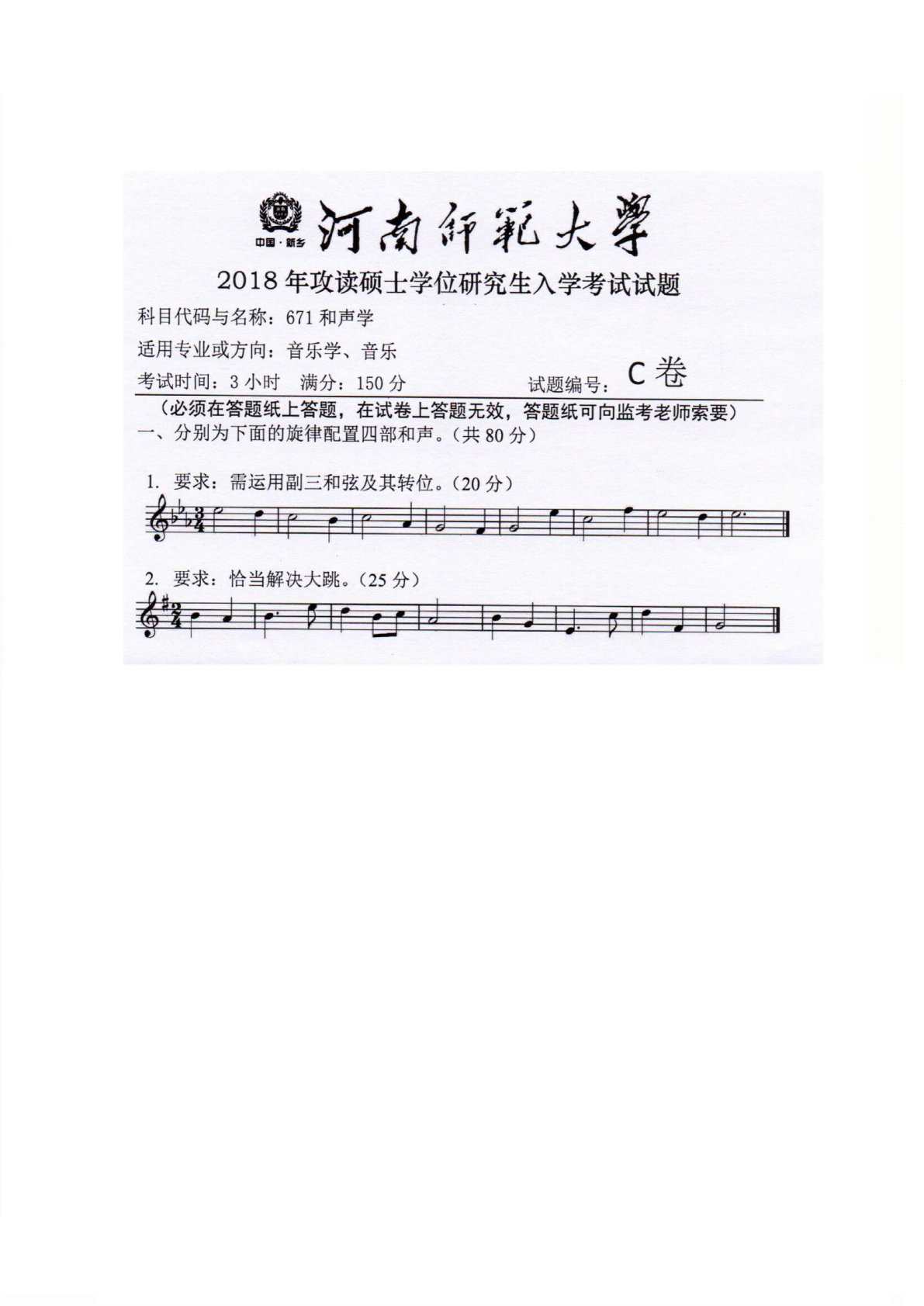河南师范大学671和声学2013年真题